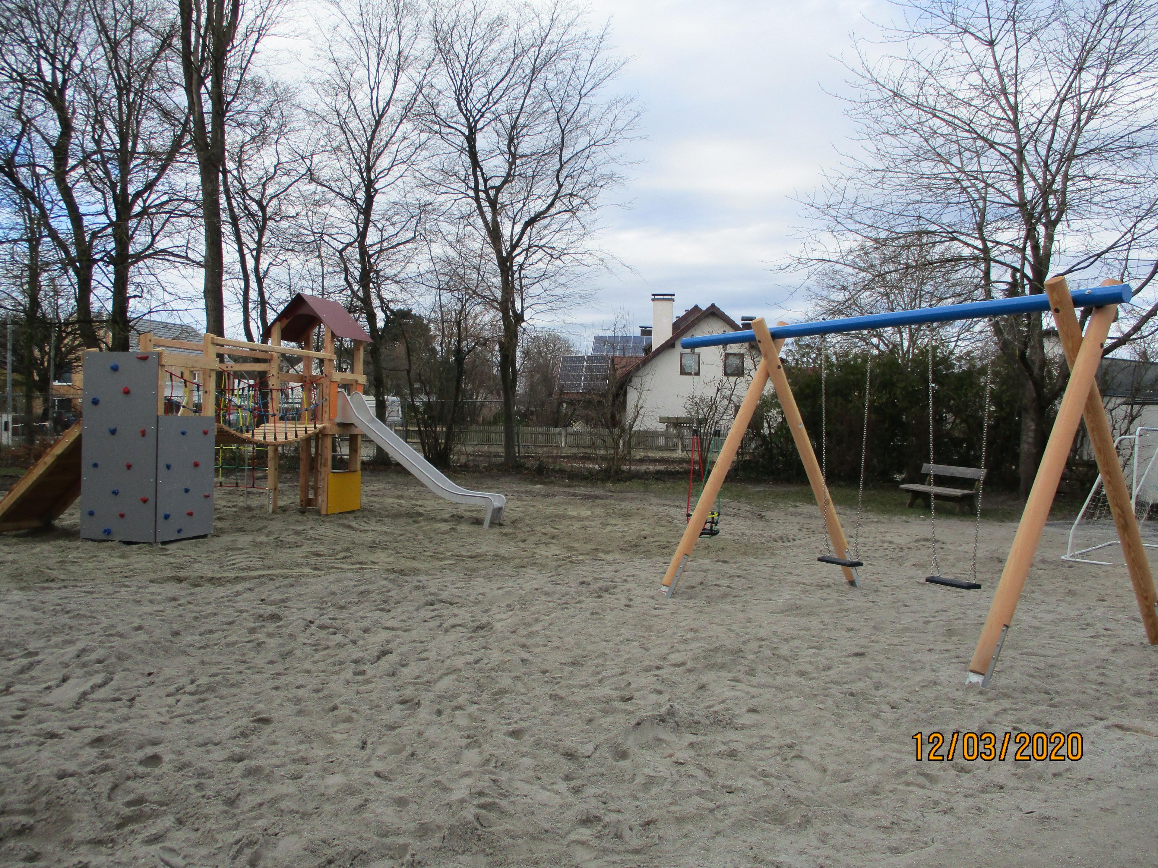 Wir haben einen Garten mit Obstbäumen und einem Pflanzbereich mit vielen Möglichkeiten zum Entdecken, Bewegen, Beobachten und Spielen (Brunnen, Gartenhäuschen, Sand- und Wasserspielbereich, Spielgeräte). Der Garten wird von allen Gruppen genutzt. Zusätzlich gibt es für den Hort einen eigenen kleinen Außenbereich sowie die Möglichkeit im angrenzenden Baumpark zu spielen.